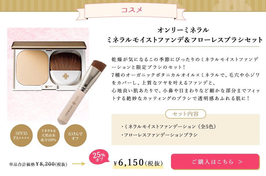 オンリーミネラルミネラルモイストファンデ&フローレスブラシセット